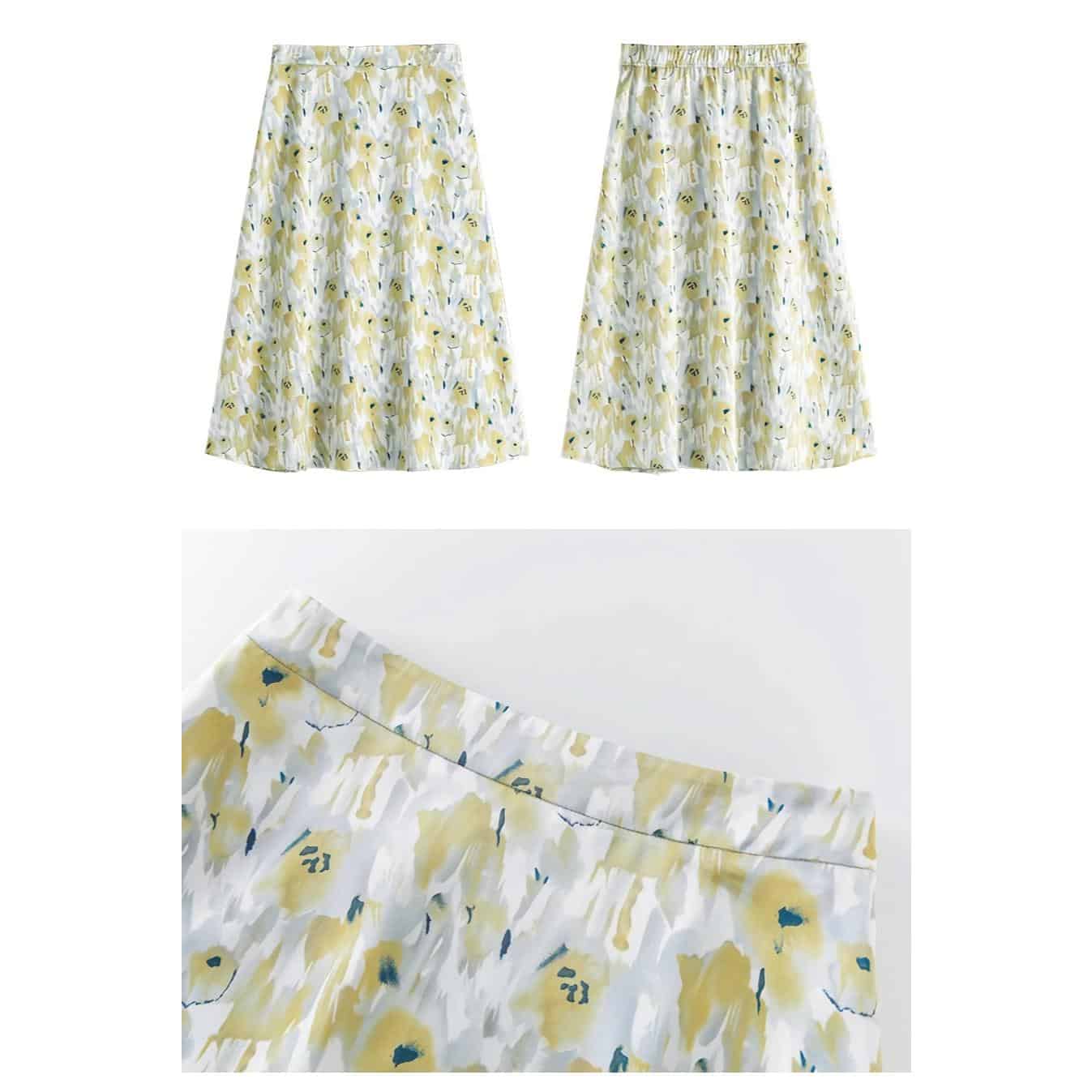 Summer French Retro Print Midi Skirt for Women – Casual A-line High Waist Skirt