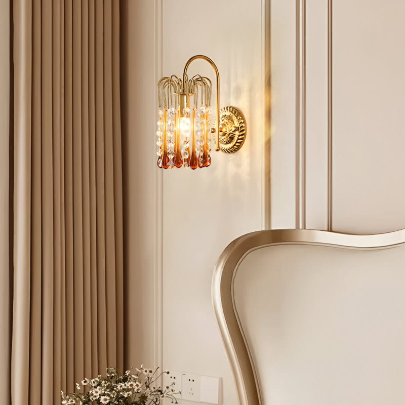 Transform your living space with the Teardrop Crystal Copper Wall Lamp, a masterpiece of French retro luxury. This exquisite lighting fixture brings a romantic ambiance to your home, combining a graceful teardrop crystal design with the warmth of copper. Perfect for creating a sophisticated backdrop in living rooms, aisles, or bedrooms, this lamp is the epitome of timeless elegance.