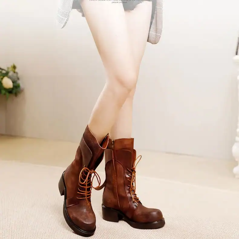 Be the first to review “Thick Heel Women’s Lace-Up Long Leather Boots with Zip”