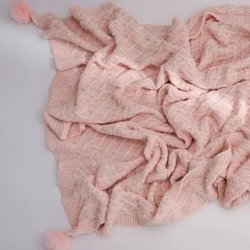 Cozy Knitted Throw Blanket with PomPom Tassels