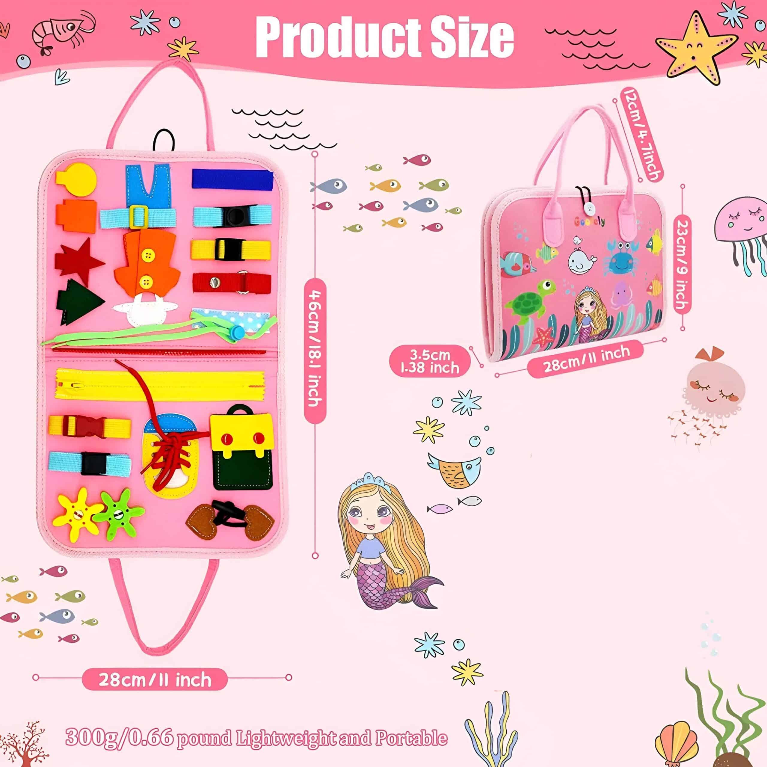 - Self-Directed Activity: Based on the Montessori method, this busy board empowers children to learn and explore independently.