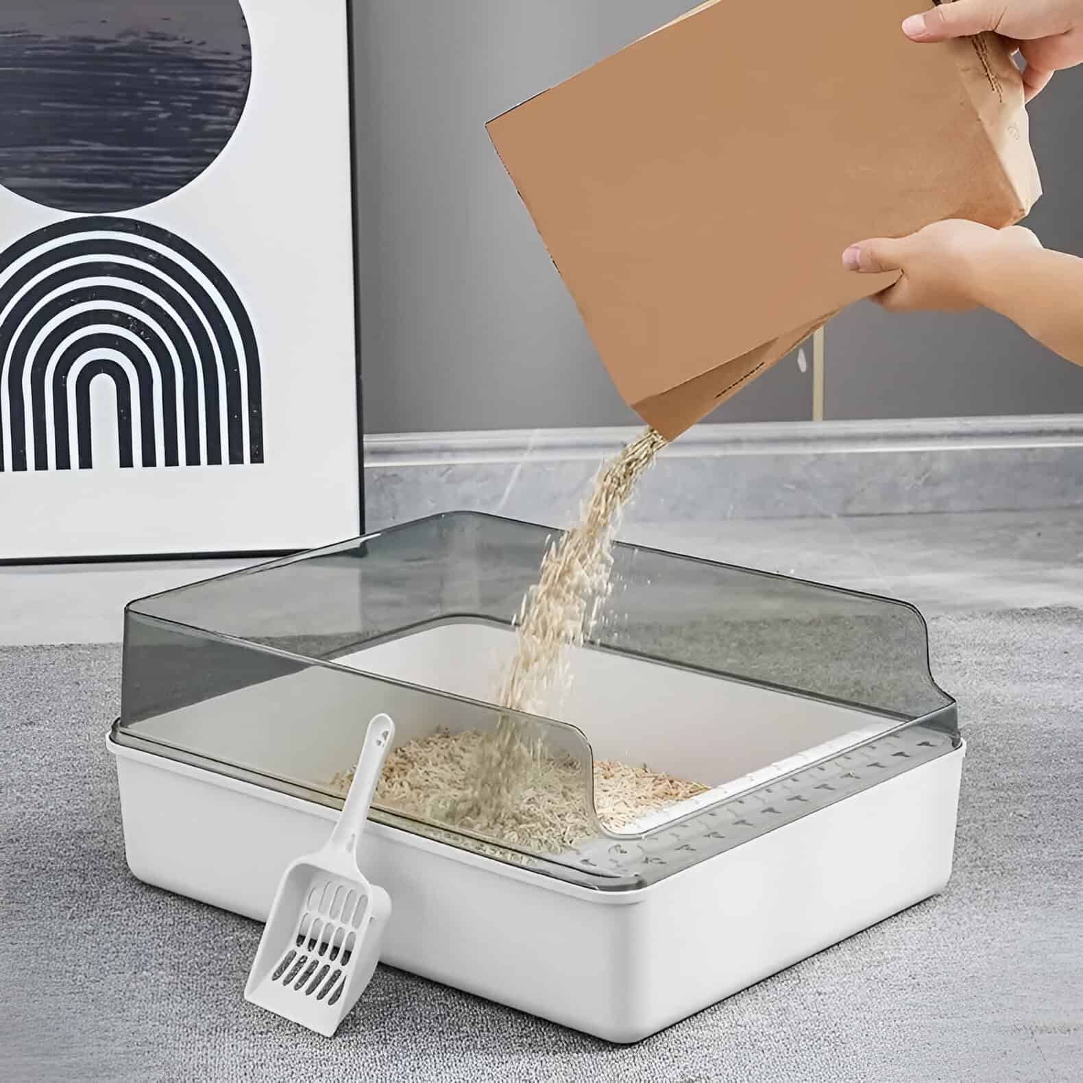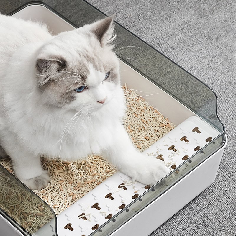Keep Your Home Clean and Your Cat Comfortable with the Transparent Semi-Enclosed Litter Box