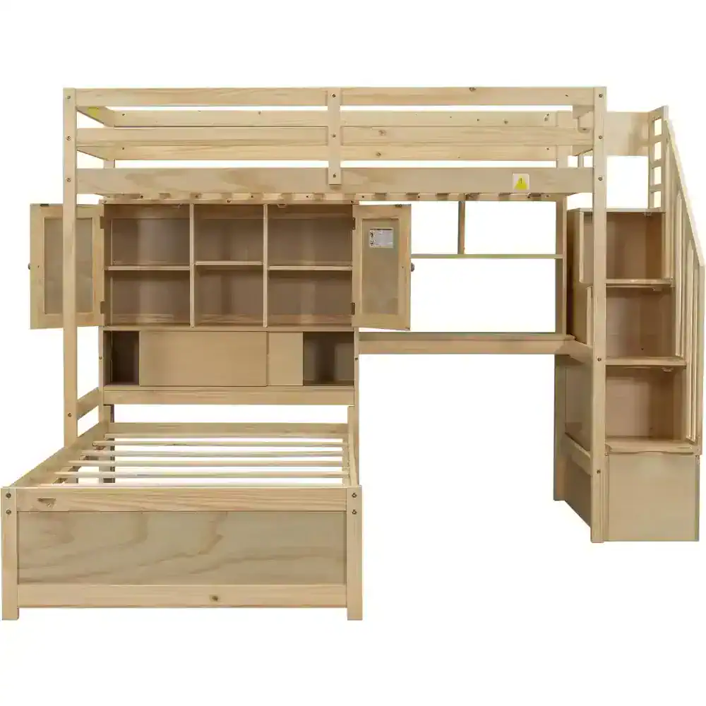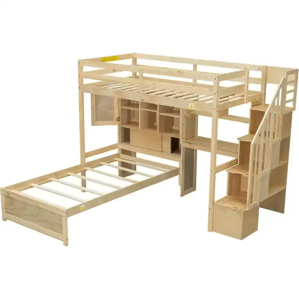 Twin Loft Bed with Stairs, Desk, Shelves, and Storage Drawers