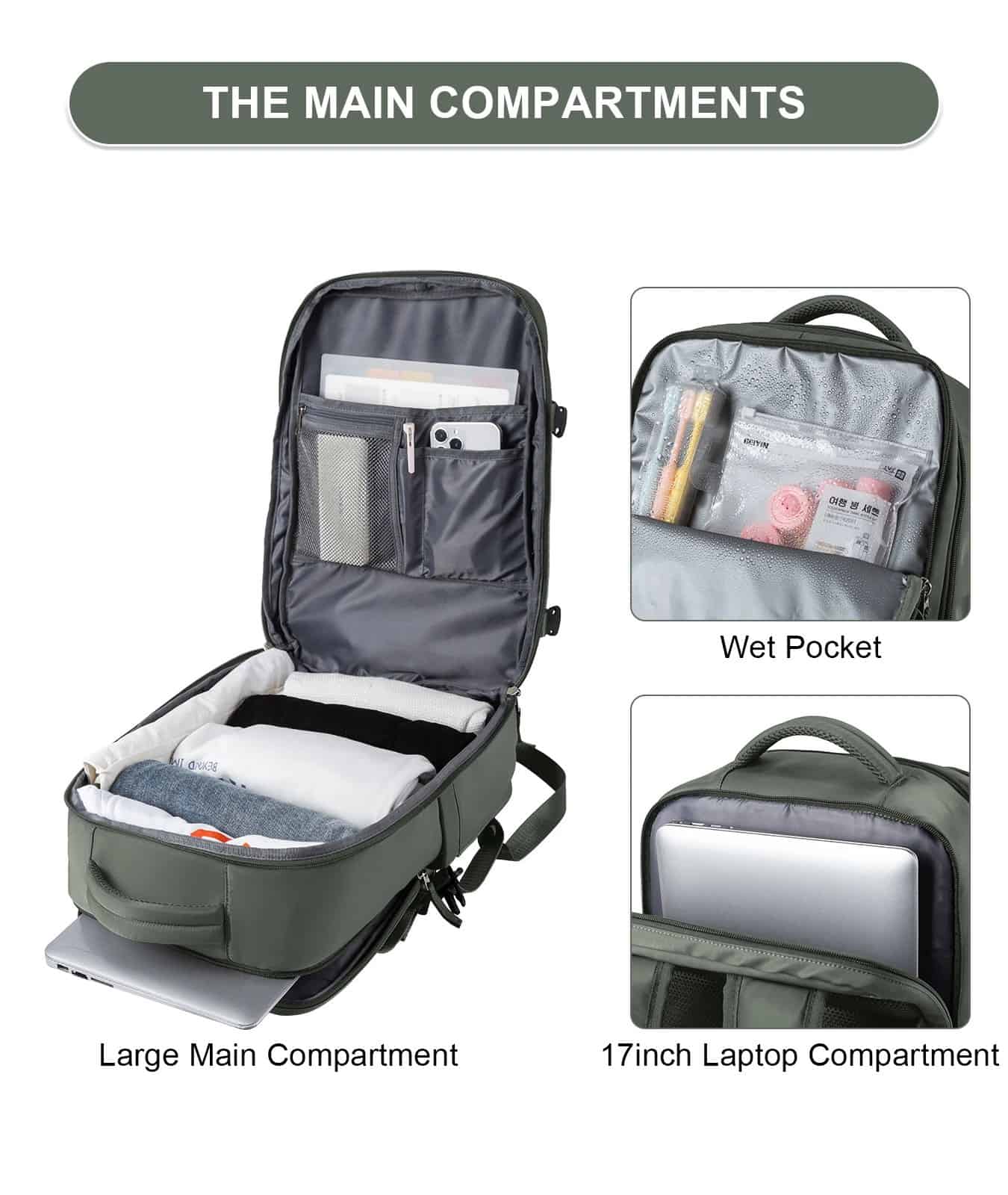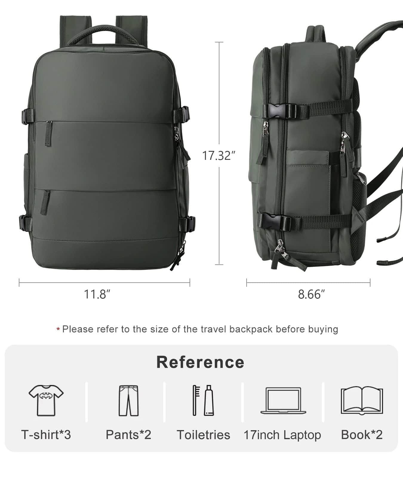 - Large Capacity Design: With ample room to fit your daily essentials, this backpack can easily accommodate a 15.6-inch laptop in its padded compartment and a 17-inch laptop in the main section. It’s perfect for school, work, or travel.