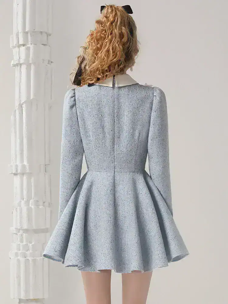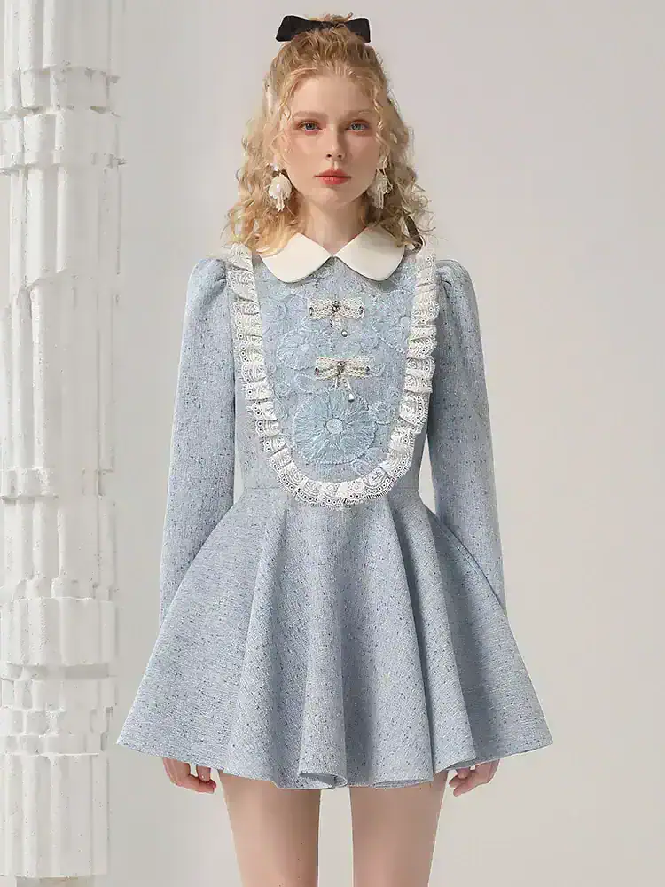 This vintage-inspired dress is perfect for any occasion where you want to stand out with a graceful, feminine look. The contrasting lace adds sophistication, while the doll collar and short silhouette give it a youthful charm. Whether you’re meeting friends for coffee, attending a family gathering, or enjoying a cozy holiday dinner, this dress is a versatile and stylish choice.