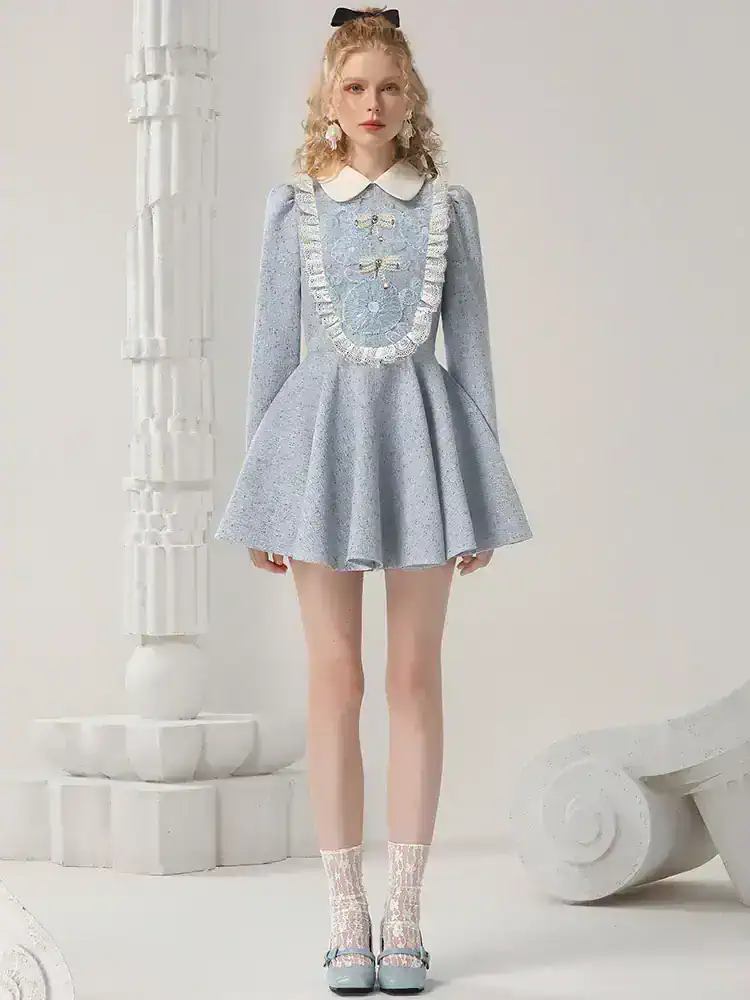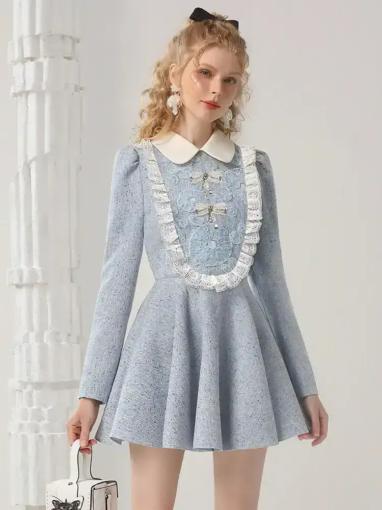 Embrace timeless charm with the Vintage Long-Sleeve Lace Short Dress, designed for the cooler seasons. Perfect for women who love a sweet yet sophisticated style, this dress features a delicate doll collar, contrasting lace details, and a flattering short silhouette. Its retro-inspired design brings together a touch of nostalgia and modern elegance, making it ideal for autumn and winter gatherings, casual outings, or even holiday events.