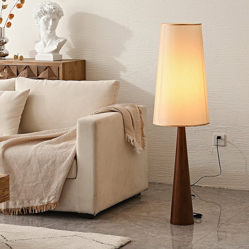 Vintage Wood Floor Lamp with Fabric Shade – Retro Style Corner Light