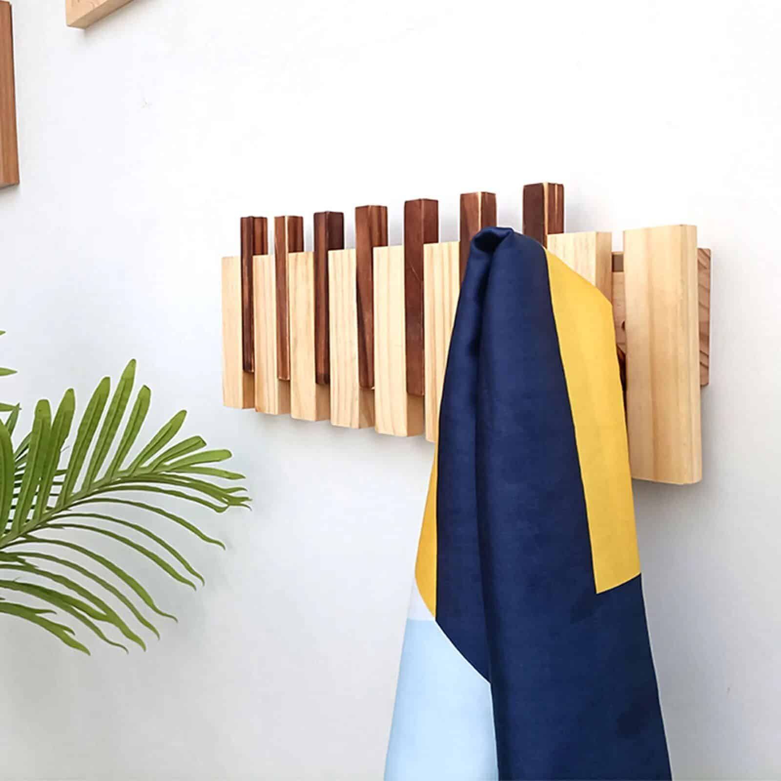 Our product stands out for its durability, ease of installation, and the unique feature of automatic hook retraction. This not only serves a practical purpose but also ensures that your space maintains a neat appearance. The natural wood material brings warmth and character to your home, making it special.
