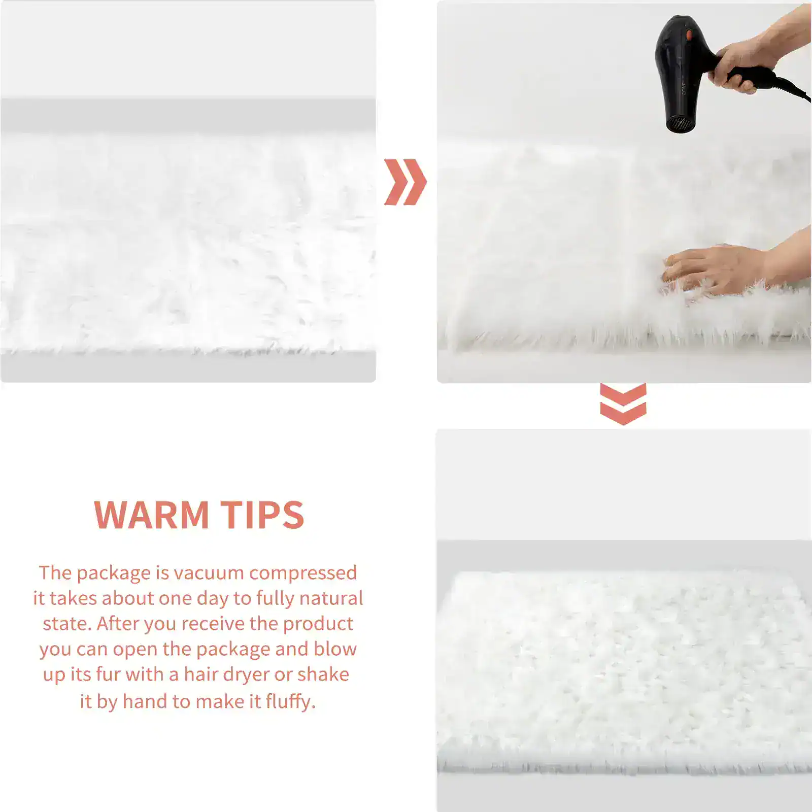 Bring warmth, style, and plush comfort to your home today with this Faux Sheepskin Fuzzy Rug!