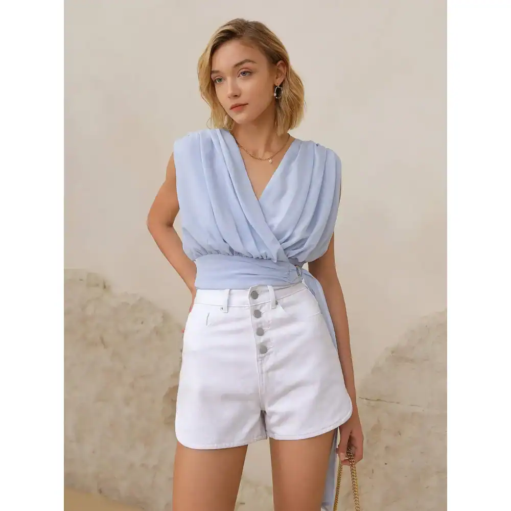 Discover the perfect blend of style and comfort with our Women’s Holiday Wrap Blouse with Buckle Detail. Tailored from high-quality polyester, this blouse offers a luxurious feel with the durability to last through all seasons. Its solid color pattern, available in khaki, blue, and mint green, ensures it pairs effortlessly with any wardrobe. The unique wrap design and eye-catching buckle detail add a touch of elegance, making it suitable for both festive occasions and everyday wear.