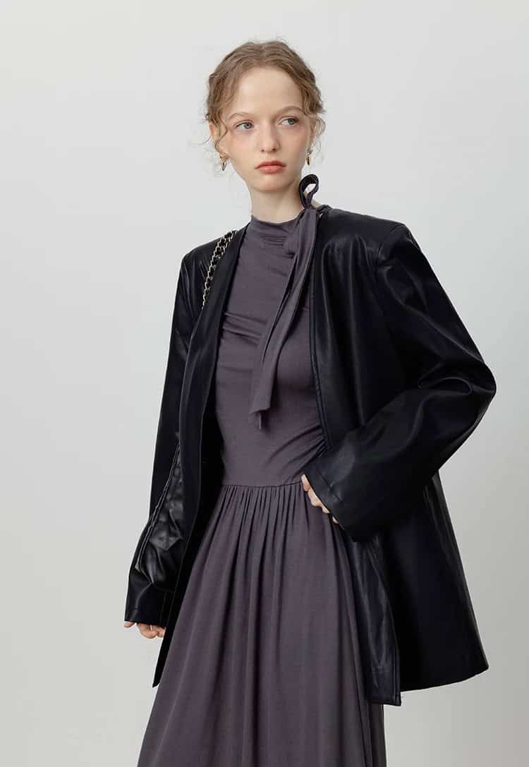 This Loose PU Leather Jacket is not just a fashion statement – it’s a piece of art that combines functionality with style. Its flattering V-neck design, along with the charming ribbon, gives you a retro look that never goes out of fashion. Whether you’re layering it over a sweater for a crisp winter day or wearing it over your favorite dress on a chilly winter evening, this jacket will keep you stylish and comfortable. Don’t settle for ordinary outerwear—choose this jacket and stand out with a look that speaks volumes!