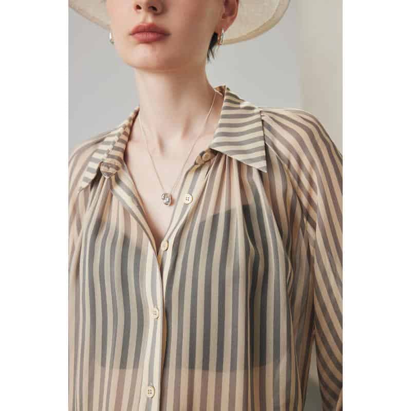 What sets this shirt apart is its commitment to quality and style. The non-stretch silk fabric drapes beautifully, creating an elegant silhouette that moves with you. The striped pattern is not just visually appealing but also versatile, making it easy to pair with a variety of bottoms and accessories. Whether you’re dressing up for the office or dressing down for a casual outing, this shirt is your go-to choice.