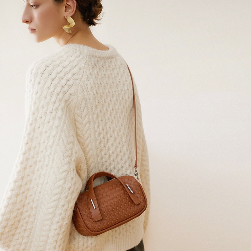 Introducing the perfect blend of retro charm and modern sophistication—the Woven Leather Crossbody Pillow Bag. Crafted from high-quality second layer cowhide, this bag flaunts a rich coffee brown hue that exudes a classic, luxurious vibe. Its unique pillow shape, combined with a detailed woven exterior, adds a touch of vintage flair to any outfit.